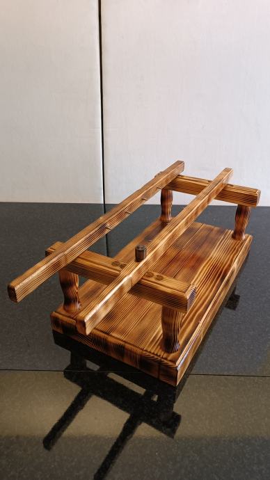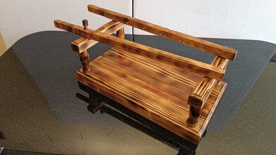 Masivno ročno izdelano leseno stojalo za pršut / inox špice, premazano z oljem, ki je primerno za živila. Cena 50€.