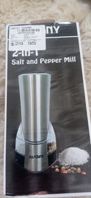 Prodamo nerabljen originalno zapakiran mlinček za sol in poper (2 v 1). Deluje na baterije. Odličnen pripomoček za vašo mizo. Ohišje izdelano iz inoxa. Smo i Ljubljane. Za več info pokličite na 070/446-235. Poglejte še druge naše oglase.