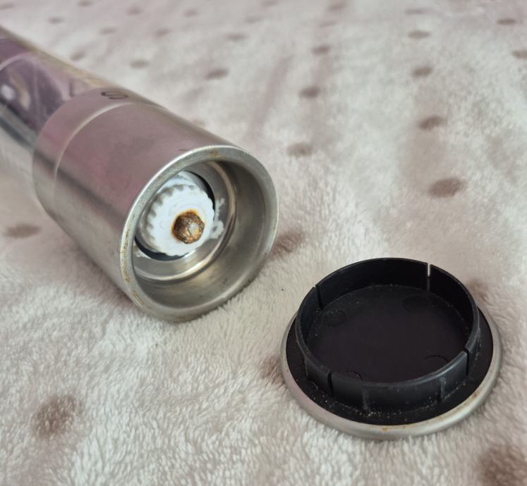 Prodam dobro ohranjen mlinček za sol in poper. Na strani, kjer je bila sol, je malenkost nastala rja.