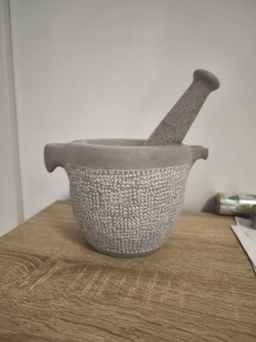 Prodam možnar s tolkačem izdelan po naročilu iz naravnega kraškega kamna primeren za mešanje zelišč, začimb,oreščkov, zdravil in drugih sestavin. Je nov in nikoli uporabljen. Cena 60e.