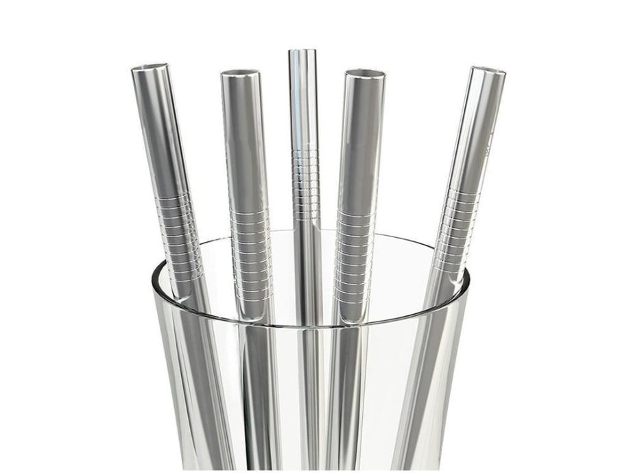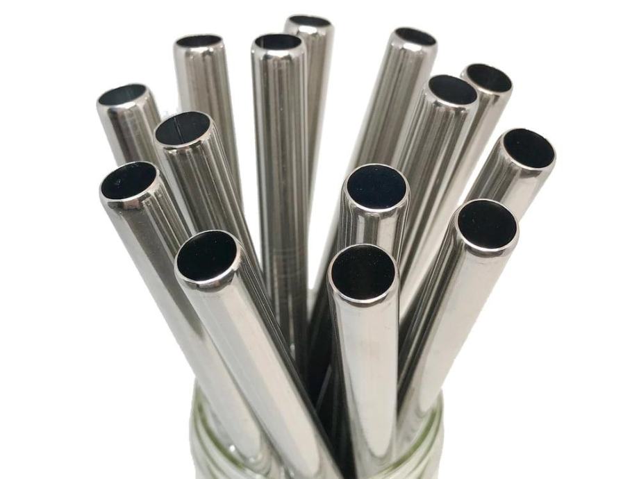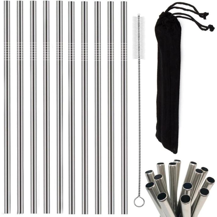 Set 10 inox ravnih kovinskih slamic za večkratno uporabo + krtačka