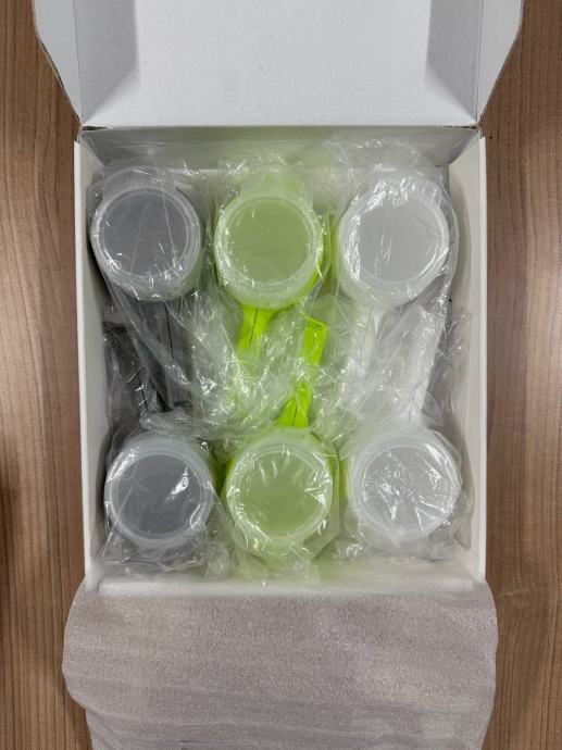 Set vključuje 6 dozirnikov: 2x bel, 2x zelen, 2x siv.