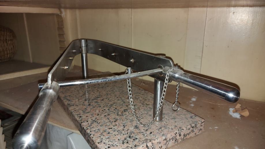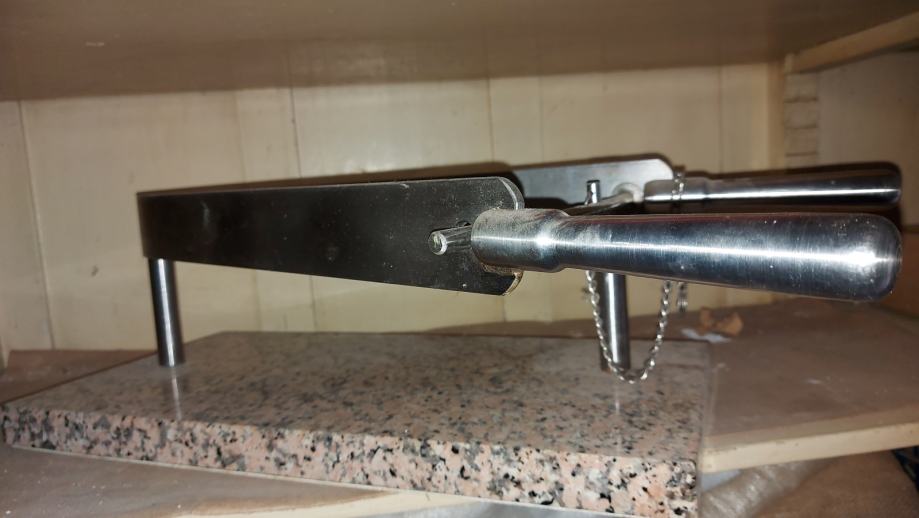 Prodam stojalo za pršut iz inoxa in marmornim podstavkom.