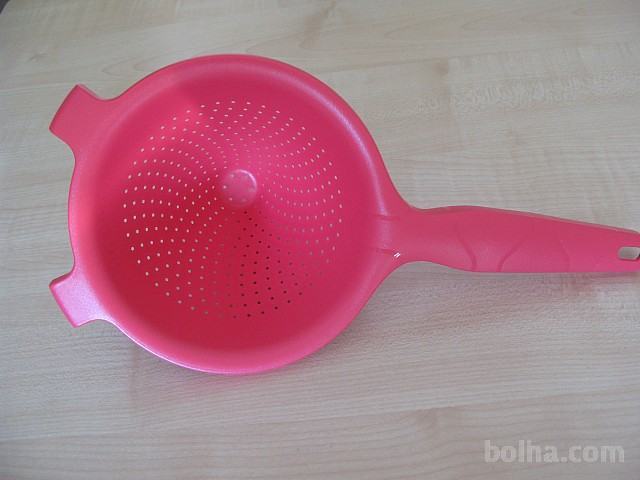 Dimenzije: premer cedila 15 cm, višina izbočenega dela 10 cm.
