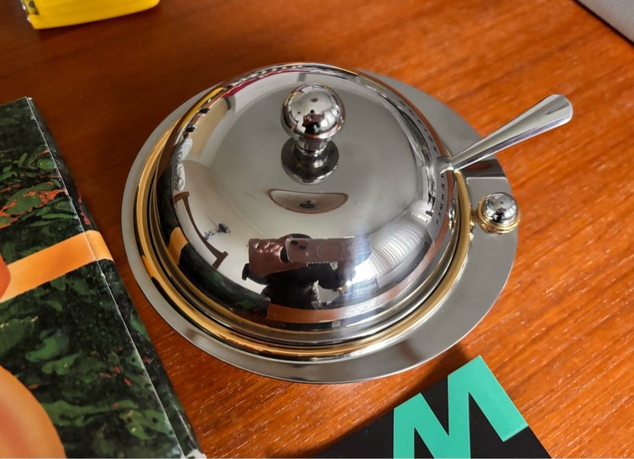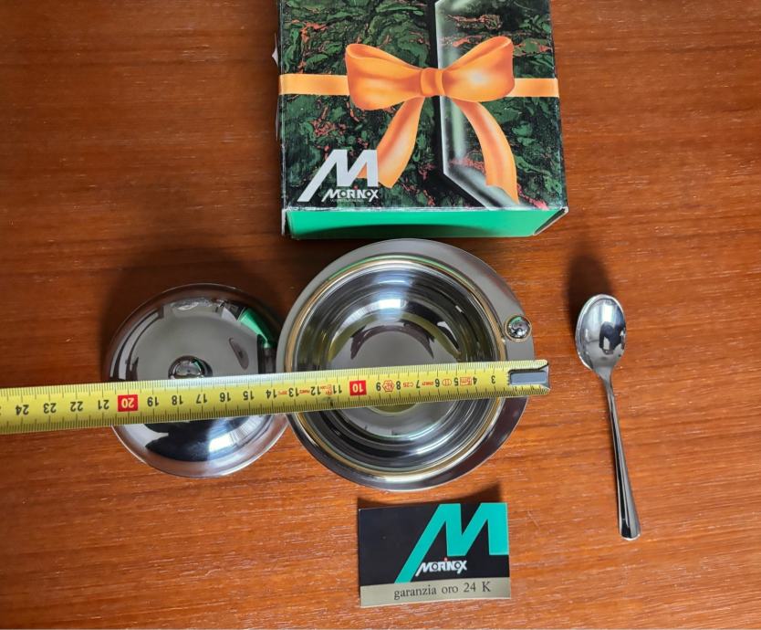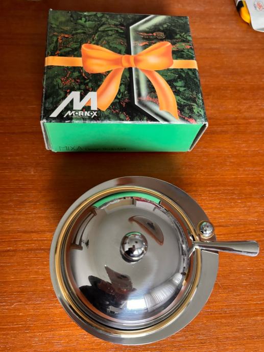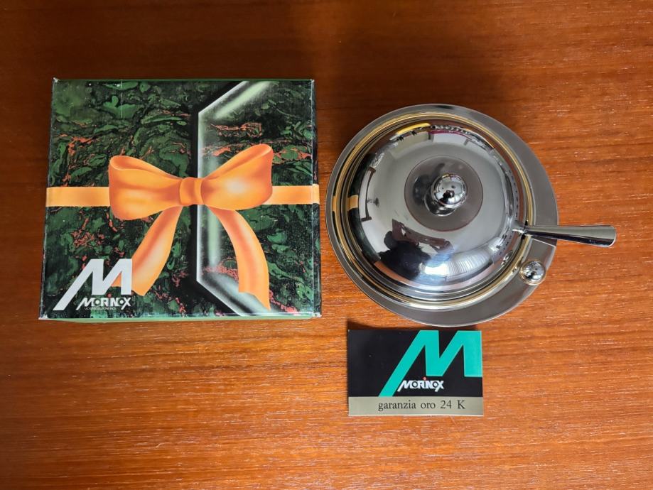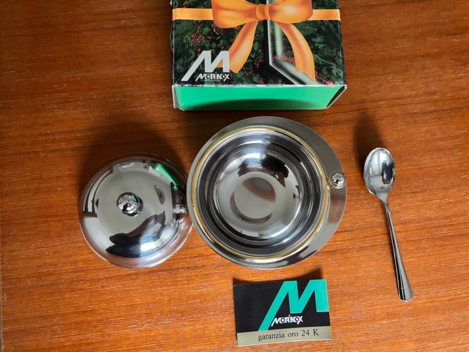 vintage sladkornica MORINOX – inox, 24 K zlato, Italija