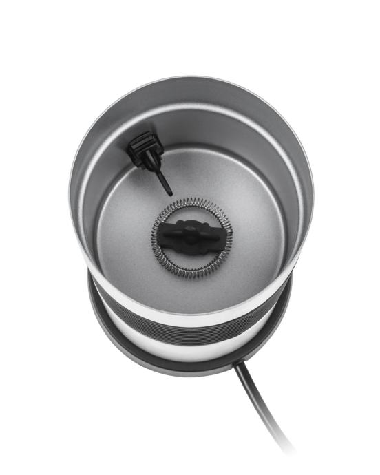 Penilnik ima številne ugodnosti, kot je nastavek za mešanje in penjenje z magnetnim nastavkom, zahvaljujoč kateremu vam bo vzel dobesedno trenutek, da ga pripravite za delo. Poleg tega vam bo prozoren pokrov olajšal nadzor nad postopkom priprave pene, gumiran ročaj pa bo zaščitil vaše roke pred visokimi temperaturami in napravo pred zdrsi med pripravo kave.