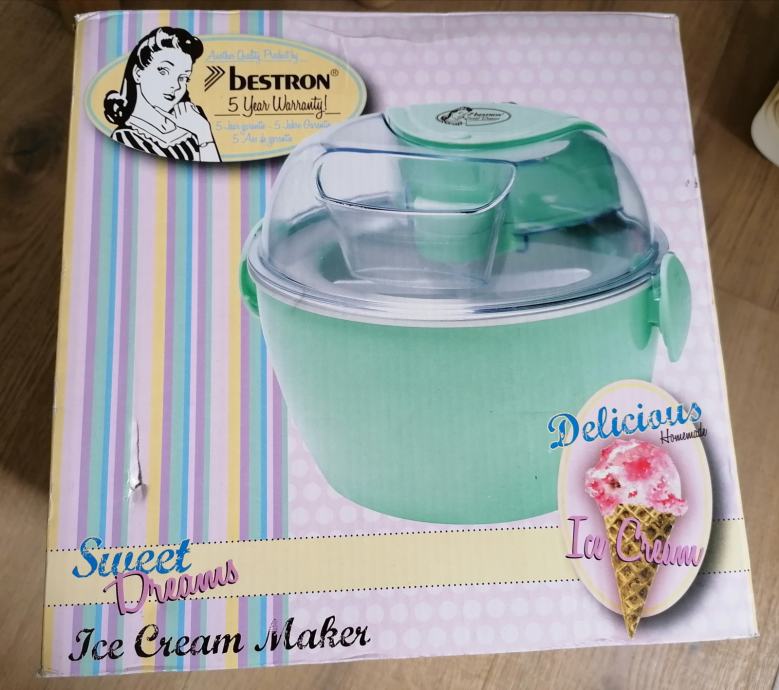 Prodam nerabljen Bestron aparat za sladoled v retro videzu.