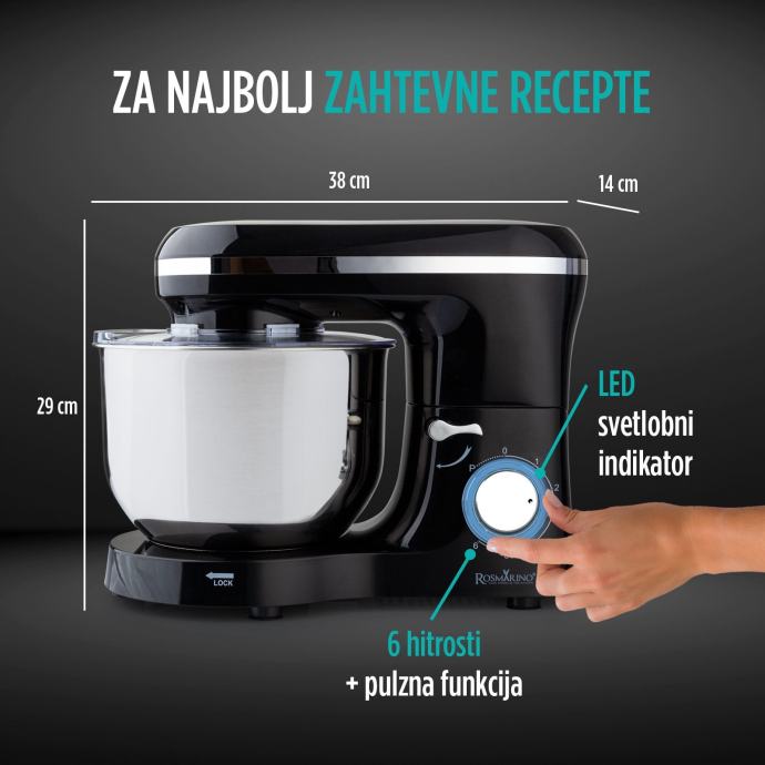 Kuhinjski robot (1400 W) za pripravo sladic in raznovrstnega testa.