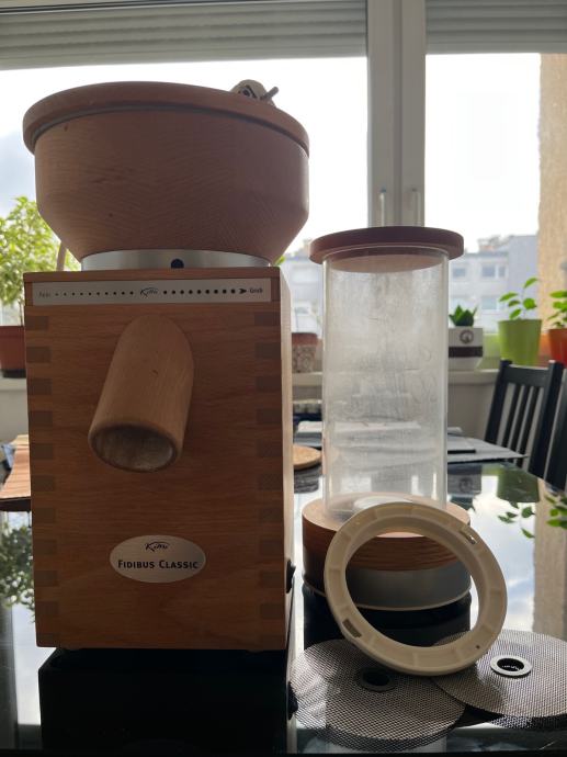 Prodam zelo dobro ohranjen mlinček Komo Fibidus classic s sitom za moko. Kupljen 7.12.2016 in ima 12 let garancijo, kar pomeni da je v garanciji je še 3 leta.