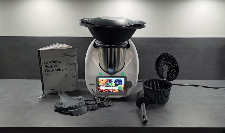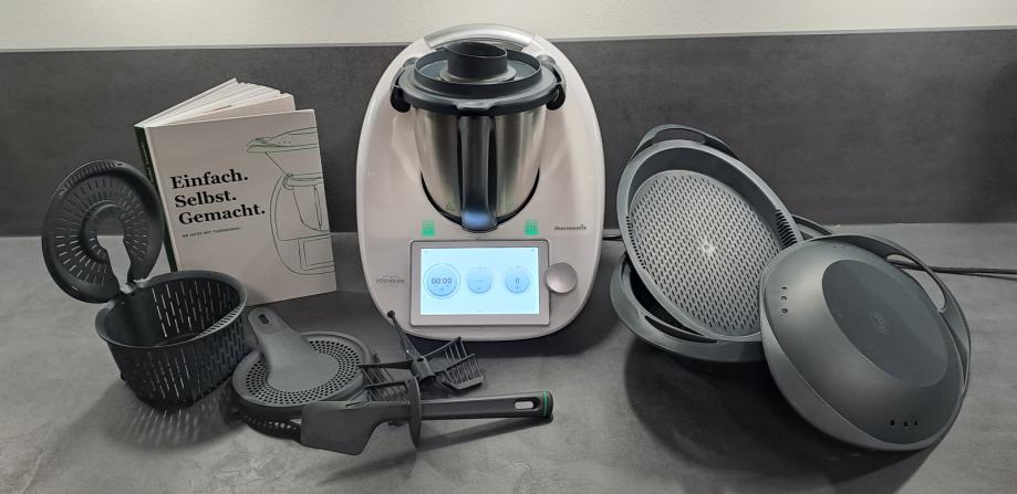 Kuharska knjiga, Varoma posoda z pokrovom, nastavek za mešalnik, lopatica in sedaj