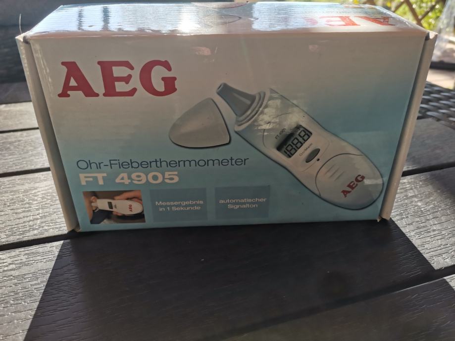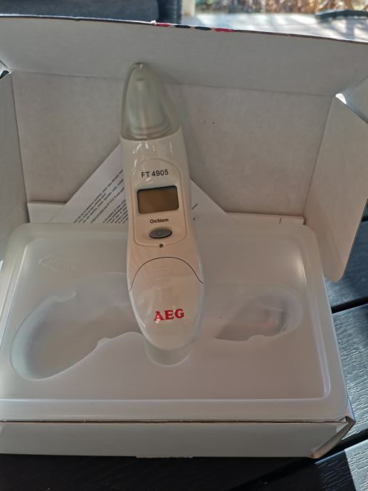 Prodajam povsem nov ušesni termometer znamke AEG, model FT 4905, ki je še neuporabljen in v originalni embalaži. Digitalni termometer omogoča hitro in natančno merjenje temperature v ušesu z avtomatskim prikazom rezultata na zaslonu.
