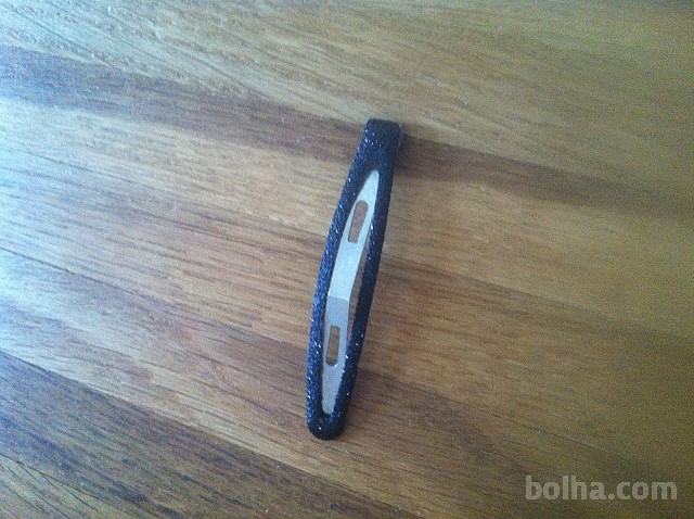 Ta španga za lase je bolj slavnostna, velikosti približno malo več kot 6 cm v dolžino in se malček lesketa, sicer pa je črna (bolj grobe strukture pot droben pesek). Izredno lepa.