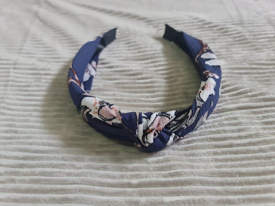 Nov komplet - moder cvetični trak za lase ter obroč.