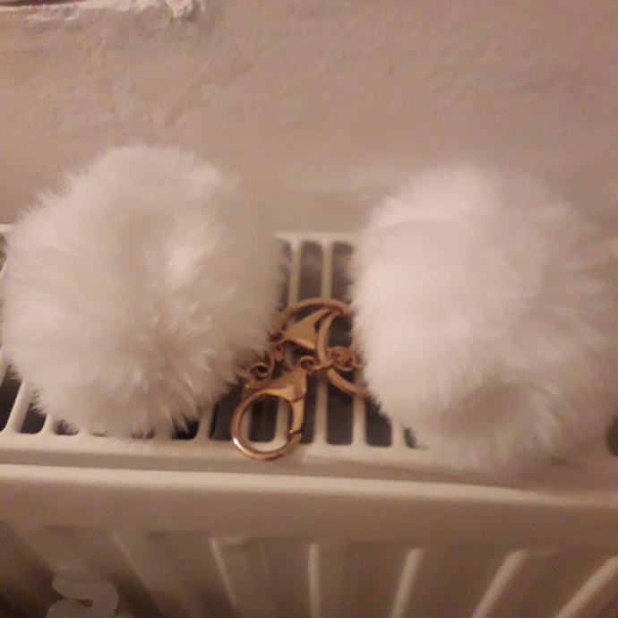 Ugodno prodamo se nove bele obeske za kljuce, 2 kosa, premera cca.10 cm, 5 eur za oba kosa, Lahko pa jih dodate tudi na torbe, torbice, kozmeticne torbice, avto, itn. Poleg podarimo se zeliscno kopalno tableto za kopanje v obliki srca.