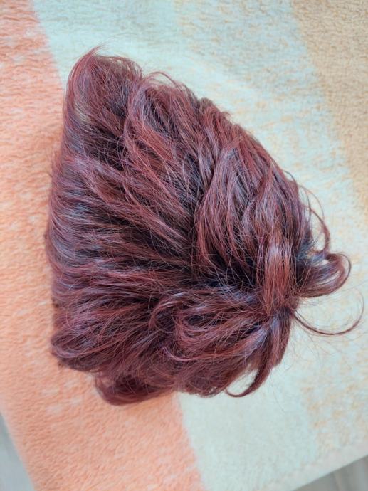 Kupljena je bila zaradi bolezni in izpada las, a preizkušena samo 1x. Ni ustrezala in zdaj je naprodaj. Lasje so rdečkasto rjavi in kratko pristriženi. Kupljena za 165€, prodam za 90. Dobite jo v MB.