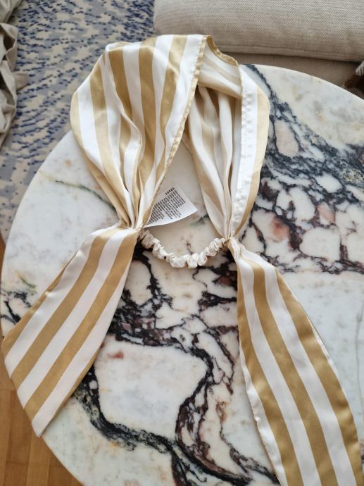 - črtast trak za lase iz blaga bele in zlate barve 6 EUR