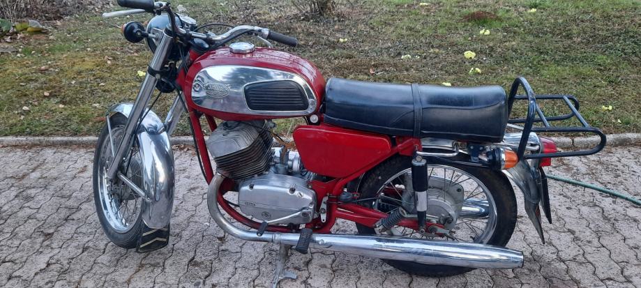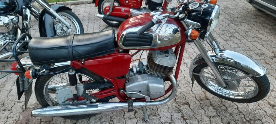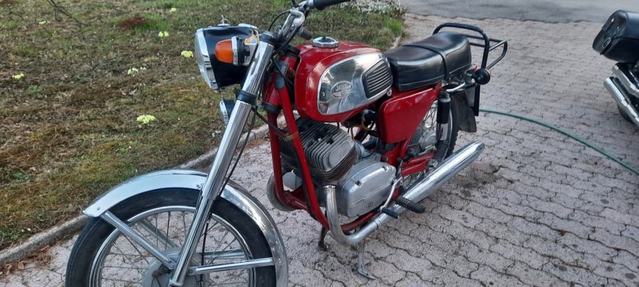 Na voljo Jawa 350, letnik 1976, motocikel je v prvi barvi, avtentičen, lepo ohranjen, stal je kar nekaj let, po števcu ima prevoženih 70571 km, števec za število prevoženih kilometrov ne deluje točno, občasno zadnjo številko obrača kar po kilometer namesto po 100 metrov, zato tudi takšno število prevoženih kilometrov, je prelepo ohranjena da bi imela takšno število prevoženih kilometrov. Točno število prevoženih kilometrov ni znano in ga ni možno ugotovit. Prodajam, ker sem v 10 letih naredil samo cca 7 kilometrov z njo. Registrirana je kot starodobnik, ima certifikat in homologacijo starodobnika. Možna menjava za kak drug starodobnik nekompleten, nevozen, opuščen projekt restavriranja, Puch, Horex, BMW, NSU, Enfield Bullet