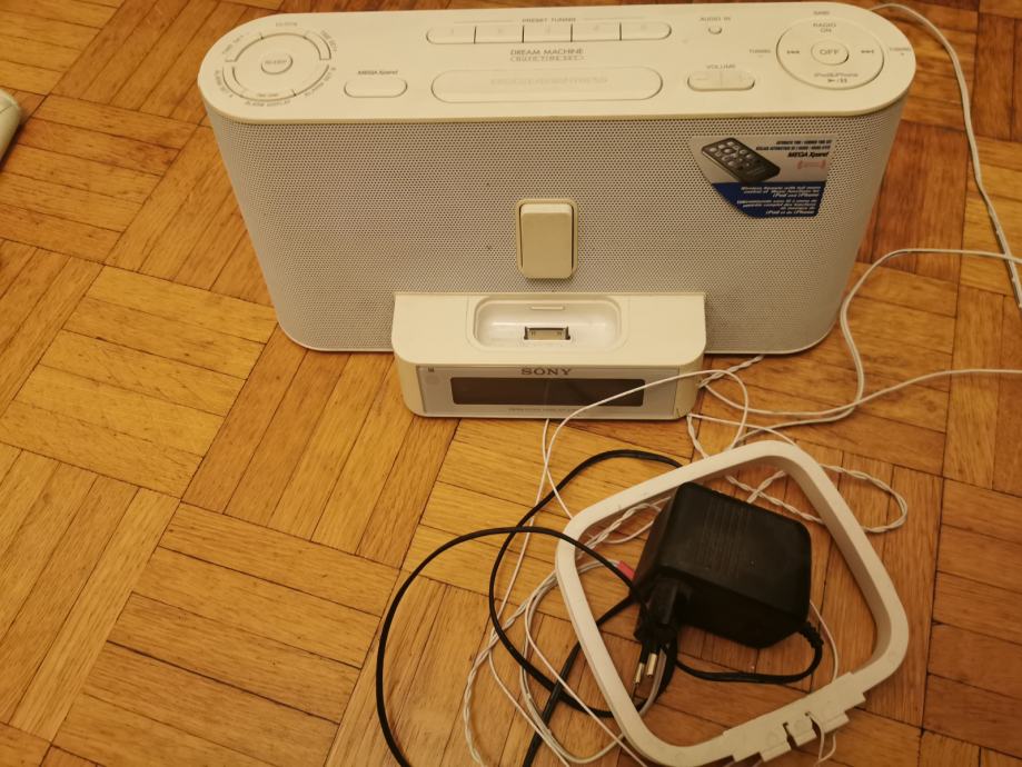 Prodam iPod prenosni zvočnik in radio, ima tudi možnost alarma.