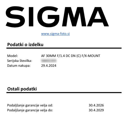 Prodam objektiv Sigma 30mm za Fujifilm X mount. Kupljen 29.4.2024 z garancijo veljavno do 30.4.2026 + podaljšano garancijo veljavno do 30.4.2029.