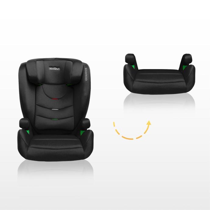 Otroški avtosedež Nimbus je i-Size sedež, namenjen starejšim otrokom z višino od 100 do 150 cm (kar ustreza starosti približno od 4 do 12 let). Namesti se z uporabo varnostnih pasov avtomobila in sistema IsoFix, da zagotovi varno potovanje otrokom, medtem ko rahlo nagnjeno naslonjalo omogoča optimalno montažo v različnih vozilih. Udobno potovanje zagotavlja 11-stopenjska nastavitev višine naslonjala za glavo ter 2-stopnja nastavitve naklona sedeža. Obloga je izdelana iz prijetne poliestrske tkanine. Nimbus omogoča odstranitev naslonjala, zato ga lahko uporabite tudi kot podstavek (booster).
