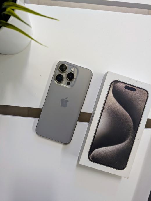 Mobilni Aparat Apple iPhone 15 Pro (256GB) – Natural Titanium Rabljen, aktiviran decembra 2024, kot nov, 86% Battery Health. Priložena vsa embalaža. Garancija potekla.