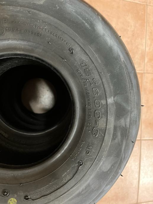 Prodam popolnoma nove nerabljne gume za traktorski obračalnik dimenzij: 15 x 6.00 - 6 (4 kos).