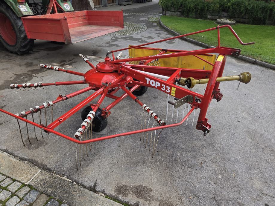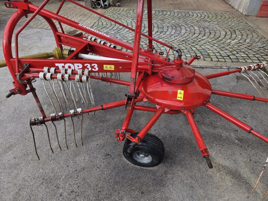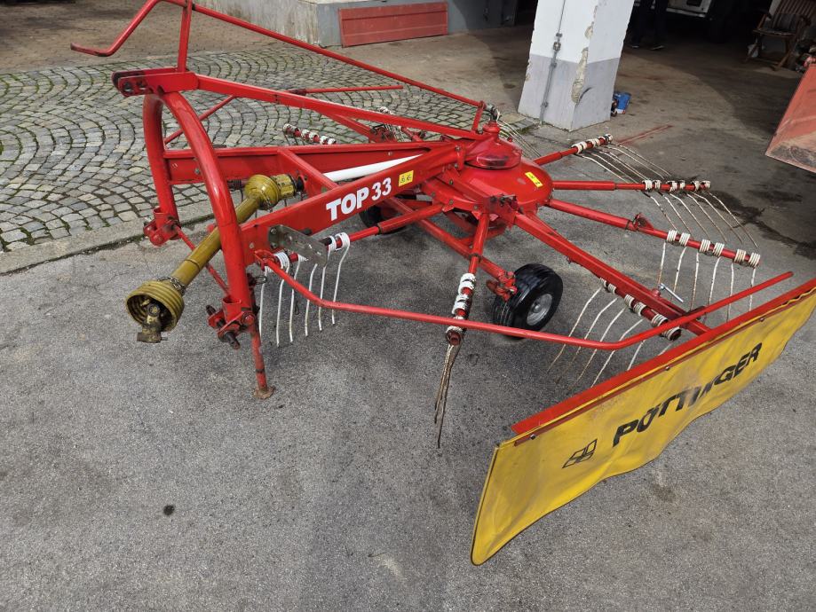 Prodam odlično ohranjen zgrabljalnik Pöttinger, širine 3.3 m, 10 rok po 3 grablje. Snemljive roke.