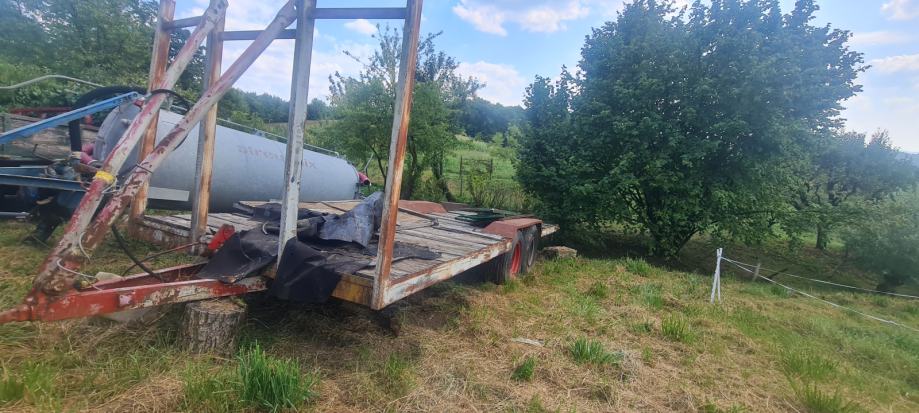 Prodam prikolico tandem, domače izdelave, z lučmi in hidravličnimi zavorami. Primerna za prevoz do 14 bal.