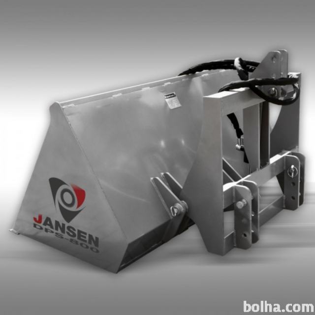 To je naš hidravlični tritočkovni nakladač s kiblo Jansen DPS-800 vključuje hidravlične cevi in priključke. Kibla ima kapaciteto cca. 800 litrov. Ti hidravlični zadnji nakladači so zato popolnoma primerni za nakladanje in prevoz peska, zemlje, proda, lesa, krme itd.