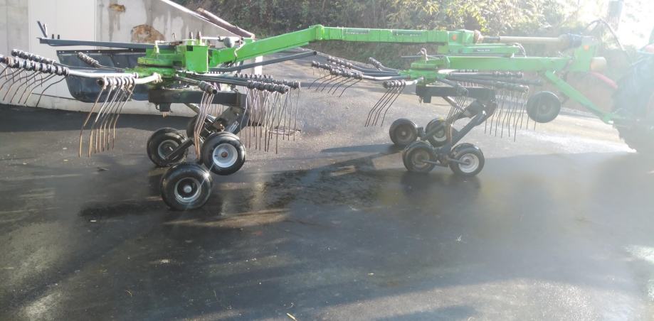 Prodam dvojni vretenasti zgrabljalnik Deutz Fahr Swatmaster 653. Delovna širina cca 6,5 m. Vlečen, tandem podvozje. 5200 eur. Tel.: 069 657 824