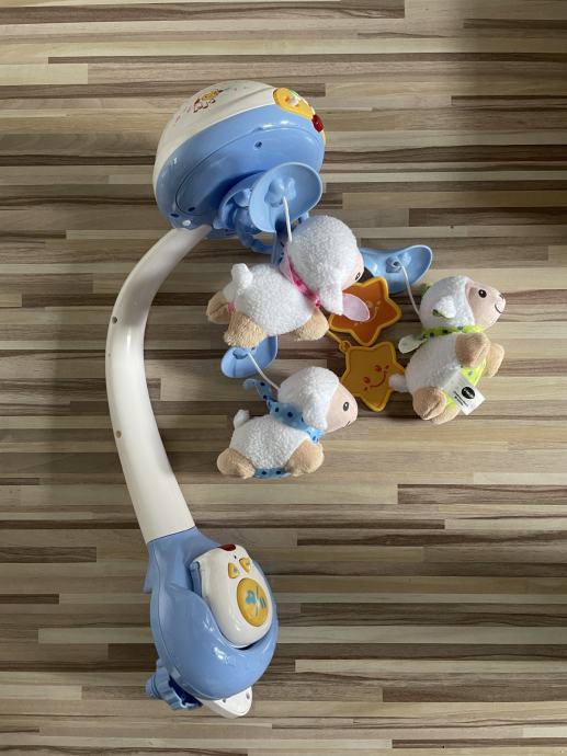 Prodamo odlično ohranjen (le nekajkrat uporabljen) glasbeni vrtiljak Vtech s funkcijo stropnega projektorja, različnimi zvoki iz narave, nežnimi melodijami za uspavanje otroka, z vrtljivimi plišastimi ovčkami, s snemljivim daljincem, kupljen v ToysRusu, star 1,5 let. Enostavna montaža/fiksiranje.