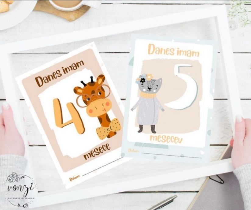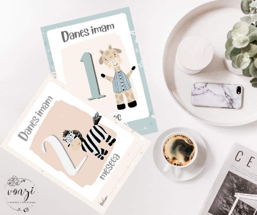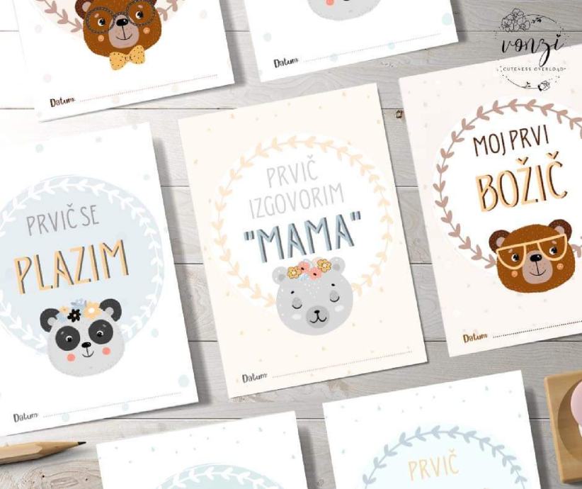 Unikatne, ročno oblikovane foto kartice mejnikov so popolne za vse čarobne “prvič” trenutke – od “Prvič se plazim” do “Prvič izgovorim mama”.