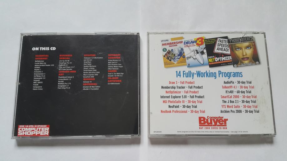 Prodam 2 raznorazni računalniški (še berljivi) zgoščenki. Obe sta NET Optimizer, a vsaka ima potem gor različno programje. Na prvi je celo gor Thief 2 igra... Najraje bi vse v kompletu prodal (da se naenkrat vsega znebim - cena v oglasu je za to), lahko pa tudi posamično zgoščenko vzamete. V enem ali drugem primeru mi sporočite ponudbo preko Bolhe/SMS/klica koliko bi dali za kaj.