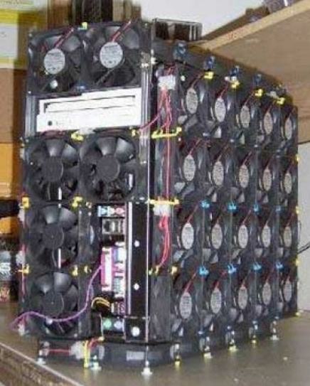 Kot namiguje naslov artikla se včasih v kakšnih intenzivnejših CAD simulacijskih programih računalnik dvigne iz mize in lebdi nad njo. Na začetku mi je bilo tečno, saj sem po 20 minutah pri 4 meterov visokem stropu nekak moral računalnik dol spraviti. Zdaj me ne moti več, kadar računalnik zaključi simulacijo grem do električne omarce pa fit ven vržem. Na vsake tolk dni morem zamenjati ventilatorje saj se uničijo pri trku na tla.