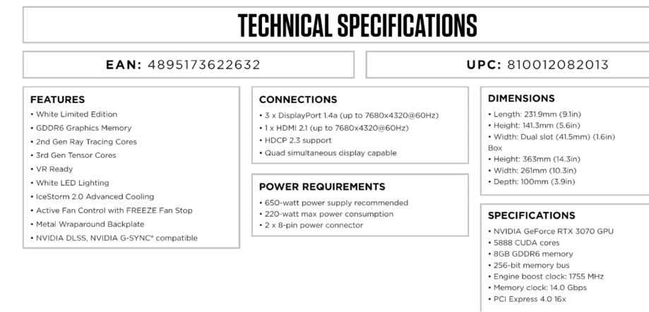 Zotac GeForce RTX 3070 Twin Edge OC White - 450€