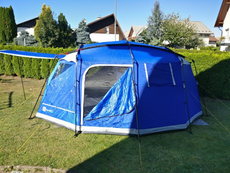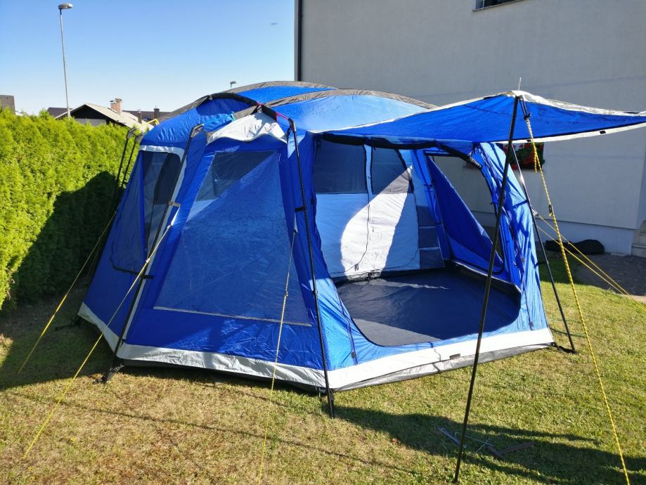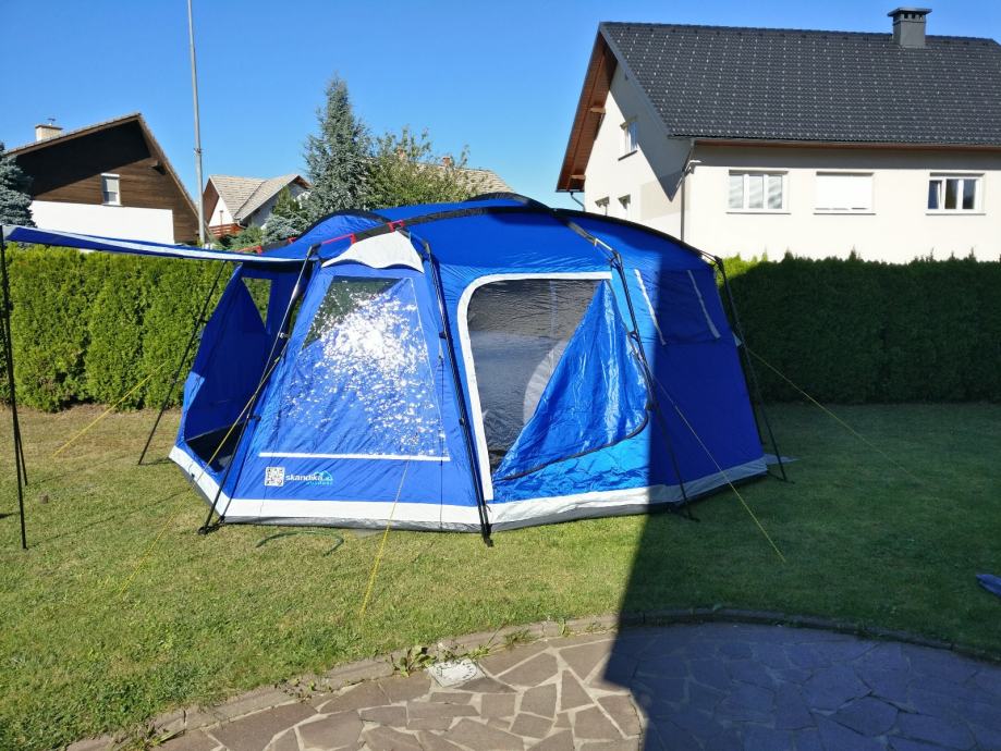 Prodam šotor za 8 oseb, Skandika Copenhagen 8 za 8 oseb. Dimenzije šotora so 5,2 x 4,7 x 2,2 m. Šotor je bil v uporabi 5 let po 5 dni v letu. Šotor nikjer ne pušča, je pa strgana elastika v eni palici, kar pa ne omejuje njene funkcionalnosti.