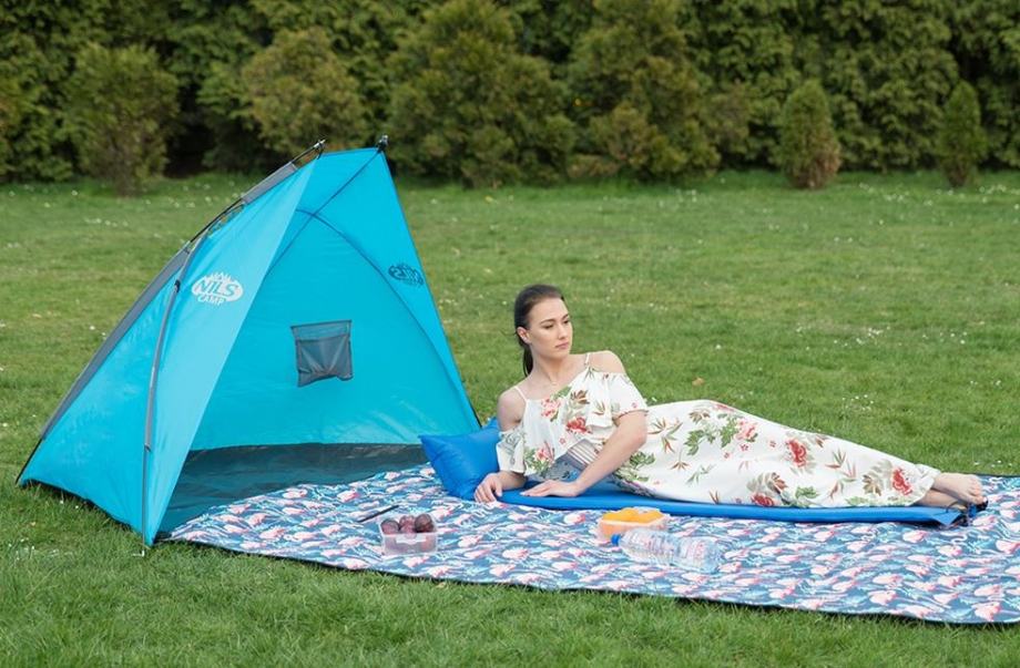 Velik senčnik za plažo namenjen tistim, ki potrebujejo več predaha od sonca. Poleg tega je senčilo tudi učinkovita pregrada pred sunki vetra. Zaradi širine 210 cm je primeren za celo družino. Dno je vodoodporno. Šotor ima prevleko, ki ščiti pred UV žarki.