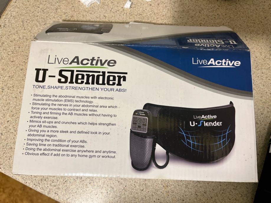Live Active U-slender pas, ki stimulira trebušne mišice s tehnologijo elektronske mišične stimulacije (EMS).