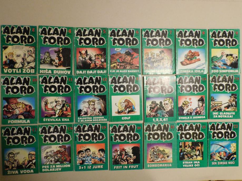 Alan Ford, prvi prevod v slovenščino. Prodam št. 2, 8, 9, 12, 16, 22, 23, 24, 25, 27, 31, 32, 35, 36, 37, 38, 39, 45, 46, 51;
