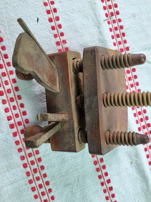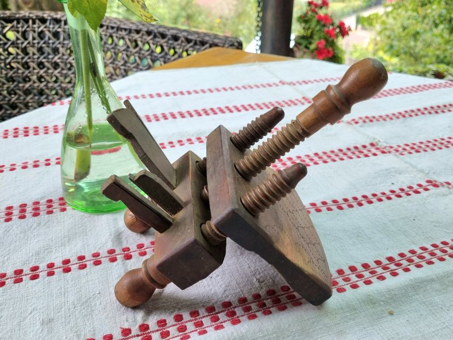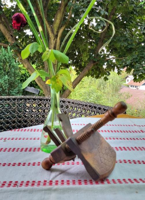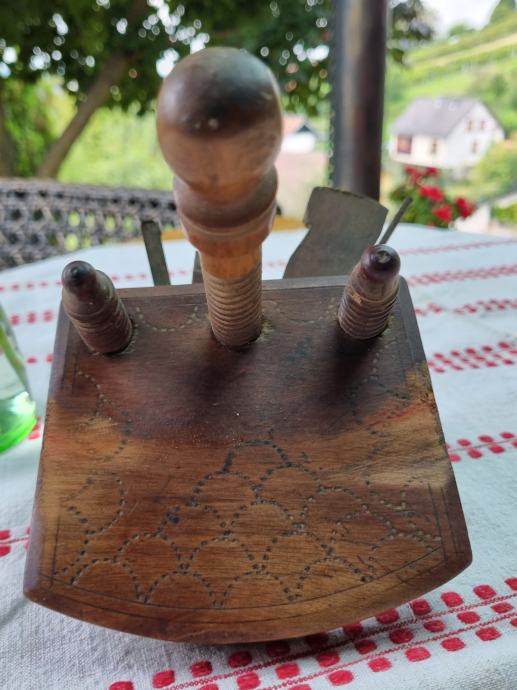 Star preko 100 let, namenjen izdelovanju sodov in podobnih predmetov, okrašen, kompleten, še zmeraj uporaben, zelo dekorativen, redek