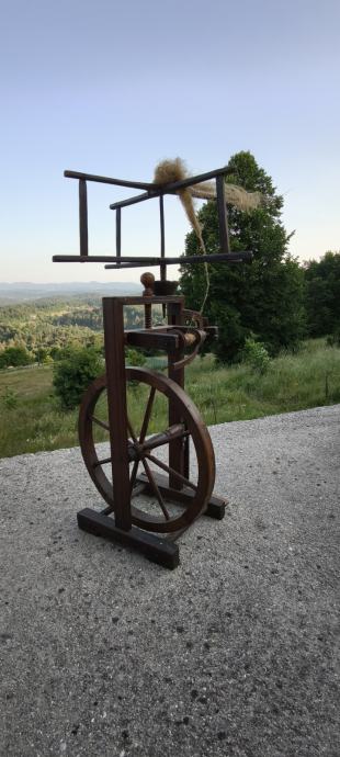 Prodam lepo ohranjen starinski kolovrat. Visok je 115 cm, premer kolesa 52 cm, širina podnožja spodaj 50 cm.