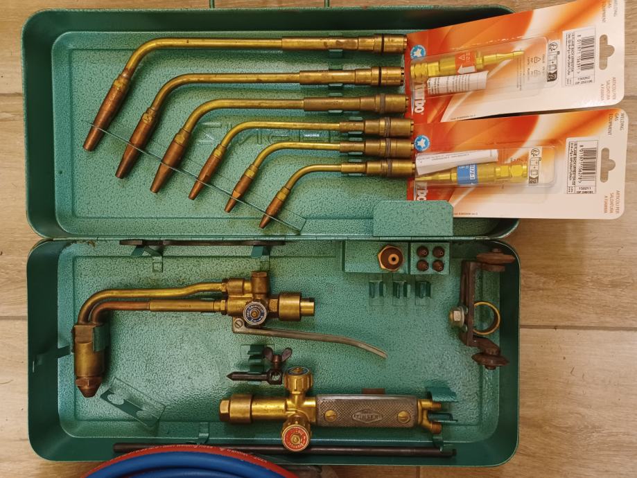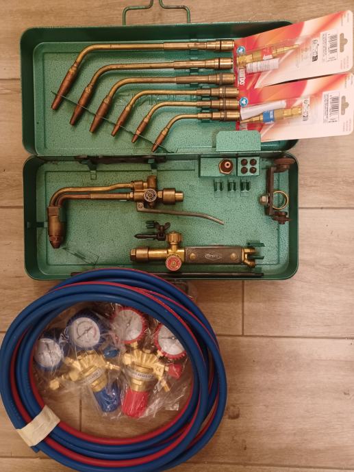 Prodam skoraj ne rabljeno profesionalno avtogeno varilno garnituro vrhunske znamkeZINSER,,zelo natančna in neuničljiva,za plamensko varjenje, garnitura vsebuje vse kar vidite na sliki ; Drzalo plamenice,gorilniki,brenarji.rezalnik, NOVE DVOJNE cevi, obe NOVI nepovratni varovalki ,NOVA reducirna ventila- manometra, acetilen in kisik in jeklenki ki sta lahko majhni,10l,20l,, ali veliki 40l, jeklenke so lahko Polne.