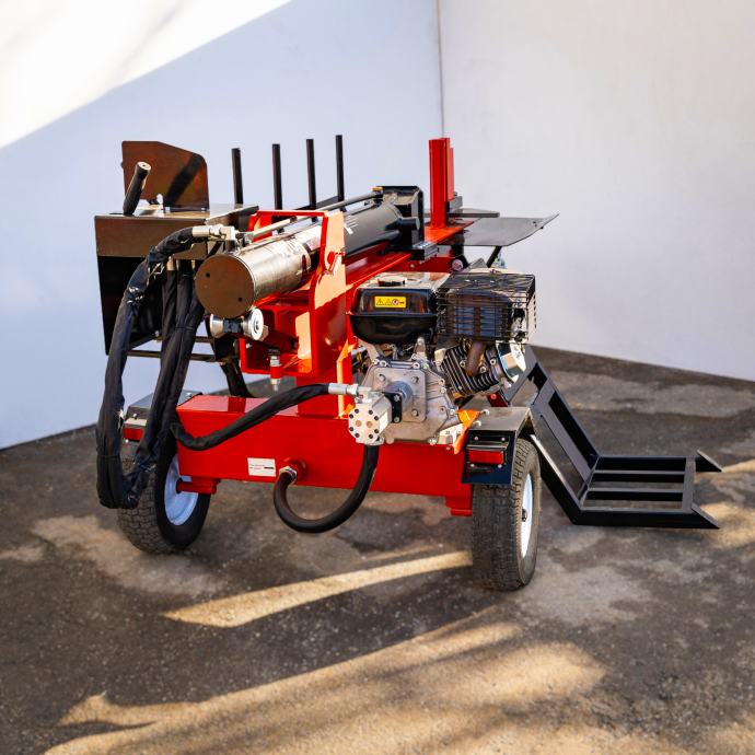 EuroForest CB 40T-PR, Bencinski Cepilnik – Prikolica je zmogljiv profesionalni cepilec z močjo sekanja do 40 ton, zasnovan za težje naloge v gozdu. S svojo robustno konstrukcijo in 9 HP LONCIN (Honda) pogonskim agregatom zagotavlja hitro in učinkovito obdelavo lesa. Z hidravlično nastavljivo križno sekiro, dvižno nakladalno rampo in zložljivim cilindrom je primeren za obdelavo večjih hlodov in zagotavlja visoko prilagodljivost ter enostavno transportiranje. Prikolica ni namenjena za cestno uporabo, a omogoča širok spekter uporabe v različnih okoljih. Idealna izbira za zahtevne gozdarske in industrijske naloge.