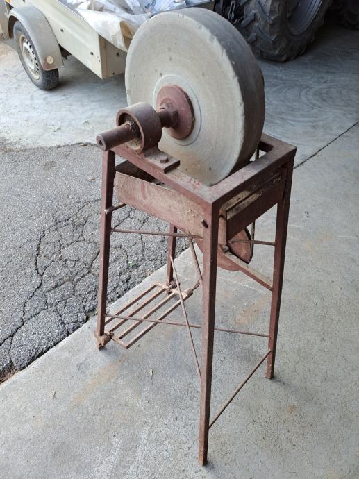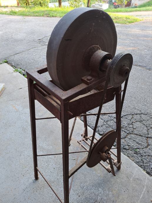 Prodam brusilni stroj za rezilna orodja, nože, sekire, na nožni pogon. Možna je montaža elektro motorja.