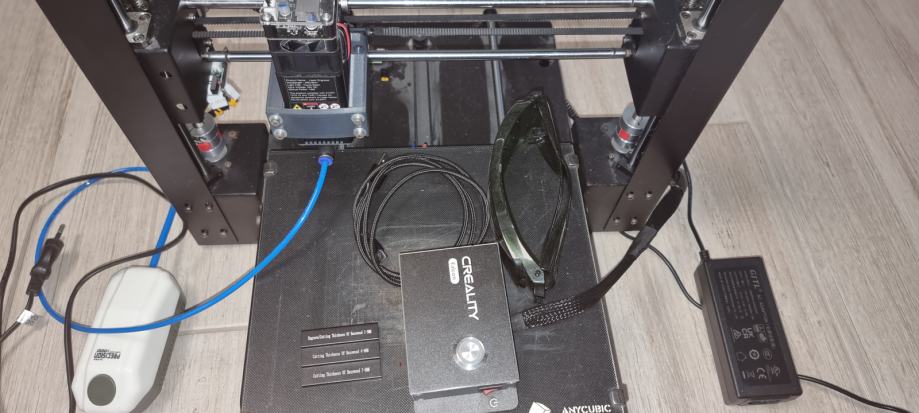 Trenutno je nameščen na 3D tislalniku Anycubic I3 Mega S. Tiskalnik je tudi v kompletu. Na tiskalniku so nameščeni koračni motorji in končna stikala. Krmiljenje poteka prek Creality kontrolerja.