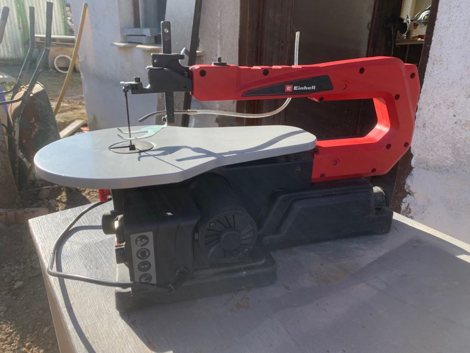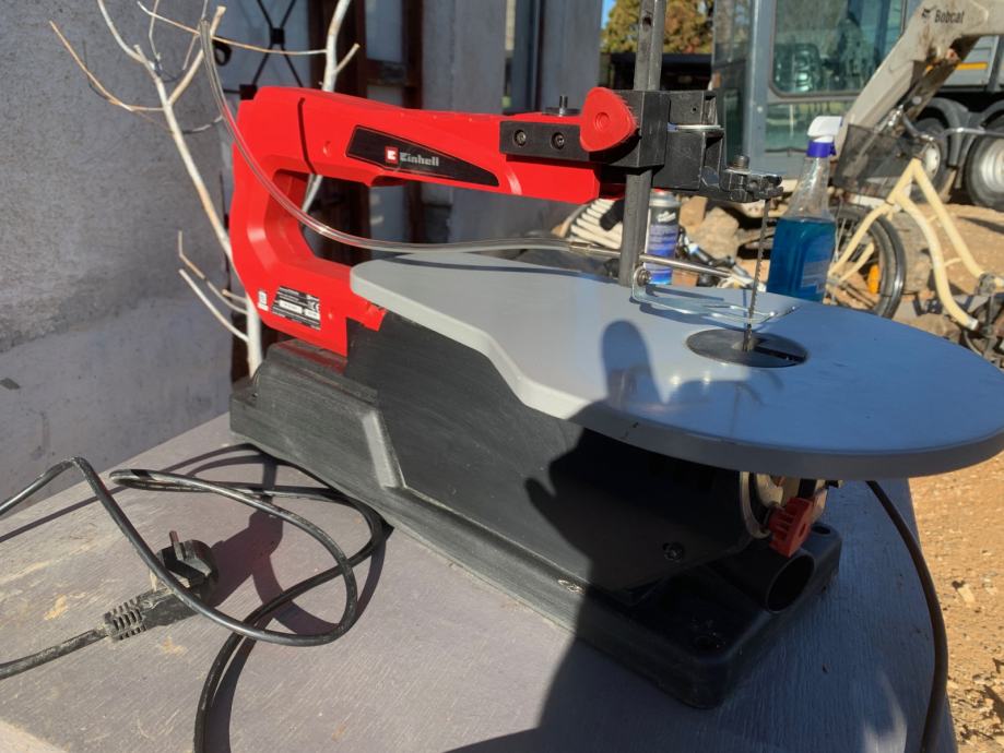 Einhell dekupirna žaga TC-SS 405 ( moč: 120 W S6 30%, 80 W S2 20 min, hitrost: 400 - 1,600 min-1) Primerena za fino rezanje lesa, kovin in plastičnih obdelovancev. Nastavljiva kovinska delovna miza 408 x 250 mm se lahko nagne do 45 °.
