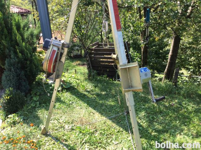 Dvigalo reševalno s trikotnim nožnim stojalom,opremljeno z dvema samozavornima škripcema(136 in125 kg nosiln.)