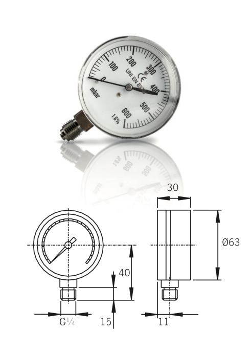 Industrijski manometer merilnik tlaka Bourdon jekleni, idealen za industrijsko uporabo