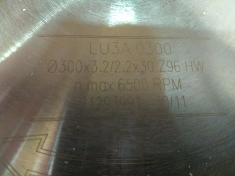FREUD žagin list za razrez iverala brez uporabe predrezila - 2 kos. Na sliki zgoraj je neuporabljen (po brušenju pri LEITZu), drugi je bil v uporabi in še ne potrebuje ostrenja.