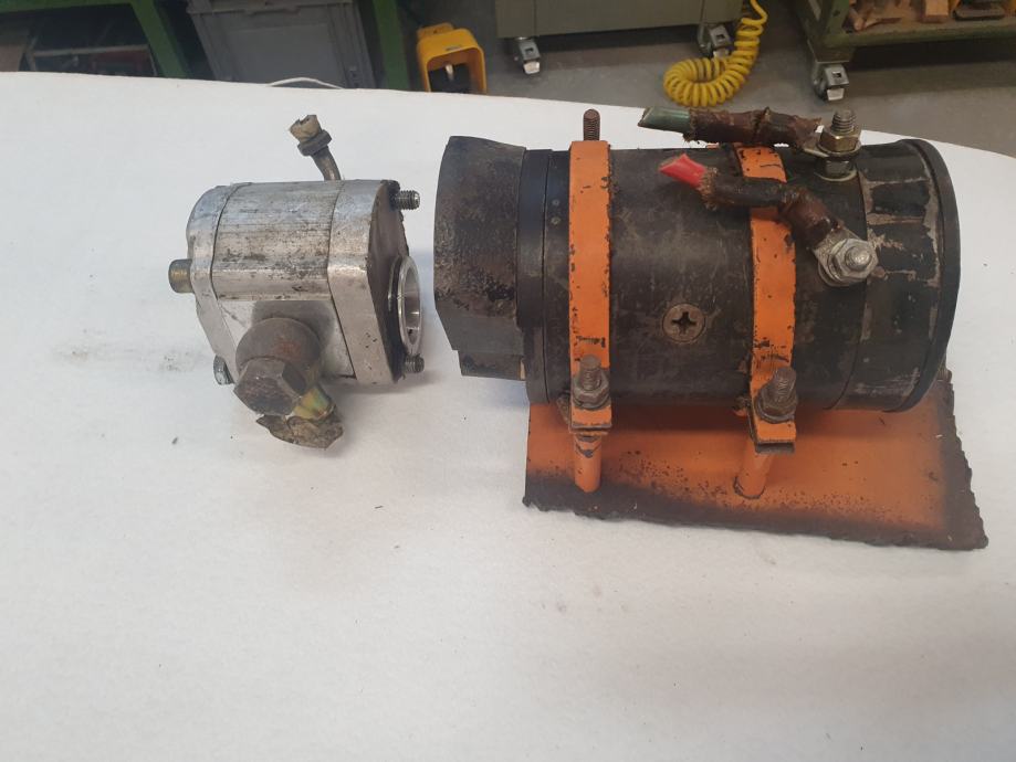 Hidravlična pumpa,prva petoletka, lahko z motorjem za električni ročni viličar. Lahko se uporabi za drug projekt